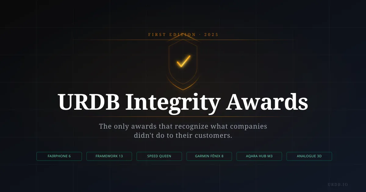 The Integrity Awards exist because that record deserves to cut both ways. The companies that resist these patterns — that build products designed to last, that treat post-purchase software as a tool for improvement rather than extraction, that make and keep commitments about what their products will do and for how long — deserve to be named as clearly as the ones that don't.
